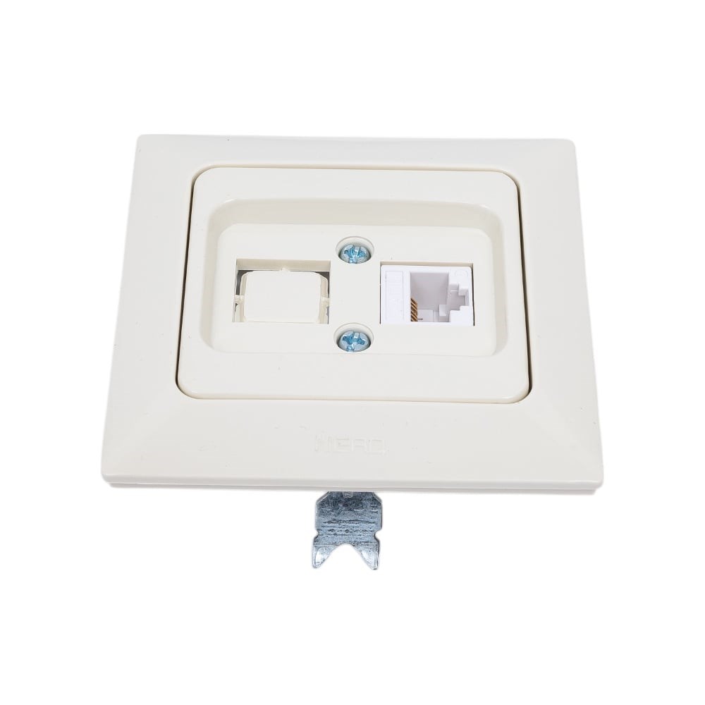 Компьютерная розетка NE-AD + гнездо с заглушкой, CAT6, Aras, Крем, 93-111-23-D1 - электроустановочное изделие, сочетающее в себе последние технические разработки и изысканный стиль, который сможет облагородить любой интерьер.