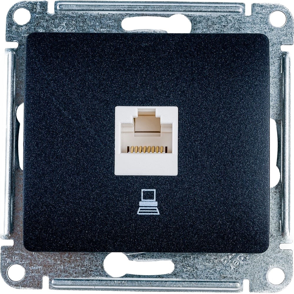Механизм Systeme Electric (ранее Schneider Electric) серии Glossa (цвет антрацит) розетки компьютерной с разъёмом RJ45 категория 5е.предназначен для удобного и быстрого подключения вашего компьютера к компьютерной сетивыполнен из материала PС+ASA, стойкого к УФ-излучению и появлению царапин