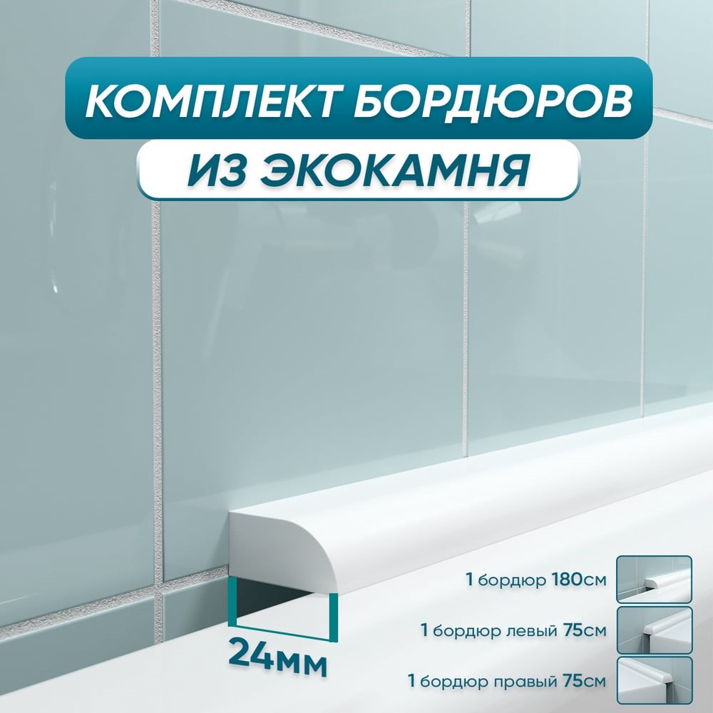Комплект акриловых бордюров для ванной BNV "Посейдон" 4603312129450 сделан из акрилового камня - это твердый, цельный материал. Ширины бордюра - 24 мм хватит, для того чтобы перекрыть зазор до 20 мм. Благодаря своим оптимальным размерам, он не только защитит от попадания воды в щели и предотвратит распространение плесени, но и хорошо скроет все мелкие недостатки. Для распила потребуется ножовка по металлу или торцовочная пила с диском по дереву или алюминию, монтаж производится на герметик или водостойкий клей.