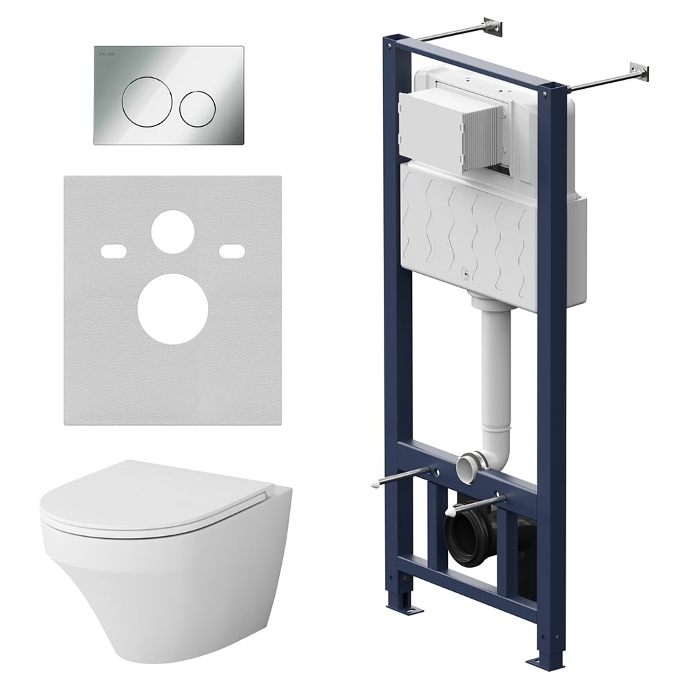 Полностью готовый к установке комплект: система инсталляции с клавишей подвесной унитаз сиденьем. Неразборная рама из стального профиля выдерживает нагрузку до 400 кг. Полностью изолированный бачок с качественной двухрежимной смывной арматурой - комфортное использование благодаря низкому уровню шума - менее 20 дБ. Укомплектован пневматической клавишей в цвете глянцевый хром. В комплекте все необходимые патрубки и крепления, а также прокладка между унитазом и стеной - звукоизоляция. Выверенный геометрический дизайн - ровные поверхности в сочетании с четкими гранями отмечен премиями Iconic Design и If Design. Полностью скрытые крепления скрытый фановый выход обеспечат эстетическую чистоту дизайна и лёгкость в уходе за керамикой. FlashClean - новое поколение безободковых унитазов без использования пластика: 100% гигиеничности 0% брызг. В комплекте быстросъемное сиденье из дюропласта с функцией микролифт. Материал сиденья дюропласт устойчивый к появлению царапин в сочетании с креплениями из нержавеющей стали гарантируют долговечность сиденья. Механизм плавного опускания рассчитанный на 100 000 закрываний - комфорт в использовании механизм быстрого снятия - легкость в уходе за сиденьем и керамикой.