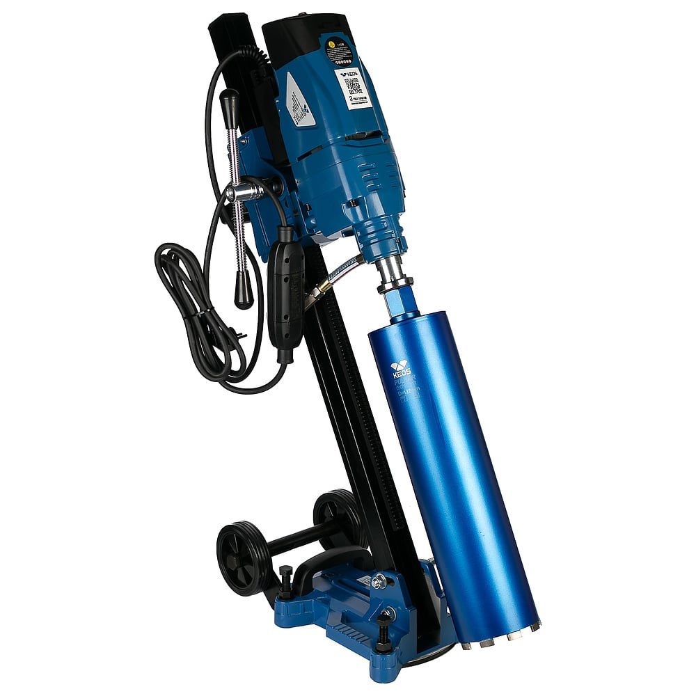 Комплект для алмазного бурения KEOS KS-250Аset штатив с регулировкой угла 251251 предназначен для сверления отверстий до 250 мм в кирпиче, бетоне и железобетоне. Дисплей и LED индикация оповещает оператора о состоянии двигателя, допустимой перегрузке и температуре двигателя. Так же имеется индикация замены угольных щёток. Всё это увеличивает срок службы агрегата и помогает оператору в работе. Профессиональный мотор выполнен в металлическом корпусе. Имеет ряд механических и электронных защит двигателя и редуктора. Электронная регулировка оборотов позволяет контролировать скорость вращения алмазной коронки при забуривании и прохождении пустот. Данный комплект оснащен штативом с возможностью регулировки угла наклона в диапазоне от 0 до 45 градусов. Простая регулировка и фиксация угла осуществляется с помощью двух болтов. Комплект оснащен транспортировочными колесами, что позволяет перемещать штатив с уже установленным мотором и коронкой по строительной площадке. Мощность двигателя - 2,8 кВт. Напряжение - 220V. Макс. диаметр сверления 250 мм. Скорость вращения - 100-500 об/мин. Посадка коронок - 1 1/4" UNC и G 1/2". Бесплатное Техническое Обслуживание каждые 100 мото часов в авторизированных сервисных центрах в течении первого года эксплуатации. Подробности условия расширенной гарантии и технического обслуживания, читайте в памятке "Сервисная_книжка_KEOS", доступна для скачивания в разделе Документация Включает Комплект для ТО KEOS.