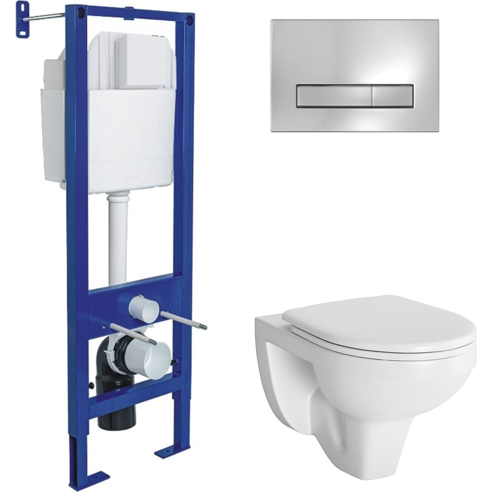 Полный комплект ATOM Line для монтажа подвесного унитаза: Инсталляция, cтальная рама с антикоррозийным покрытием, расчётная нагрузка до 400 кг. Ножки c регулировкой высоты. Межосевое расстояние под крепежные шпильки унитаза 18 и 23 см. Бачок с функцией шумоподавления Двухрежимная кнопка смыва, хром глянец, эконом слив 3 л, полный слив настраивается от 5.5 до 8.5 л Монтажный кнопочный узел, полный комплект патрубков, лекала для монтажа отверстий Унитаз Gamma: безободковый смыв Сиденье полипропилен Gamma PS крепление микролифт, пластик Все крепежи для установки в комплекте