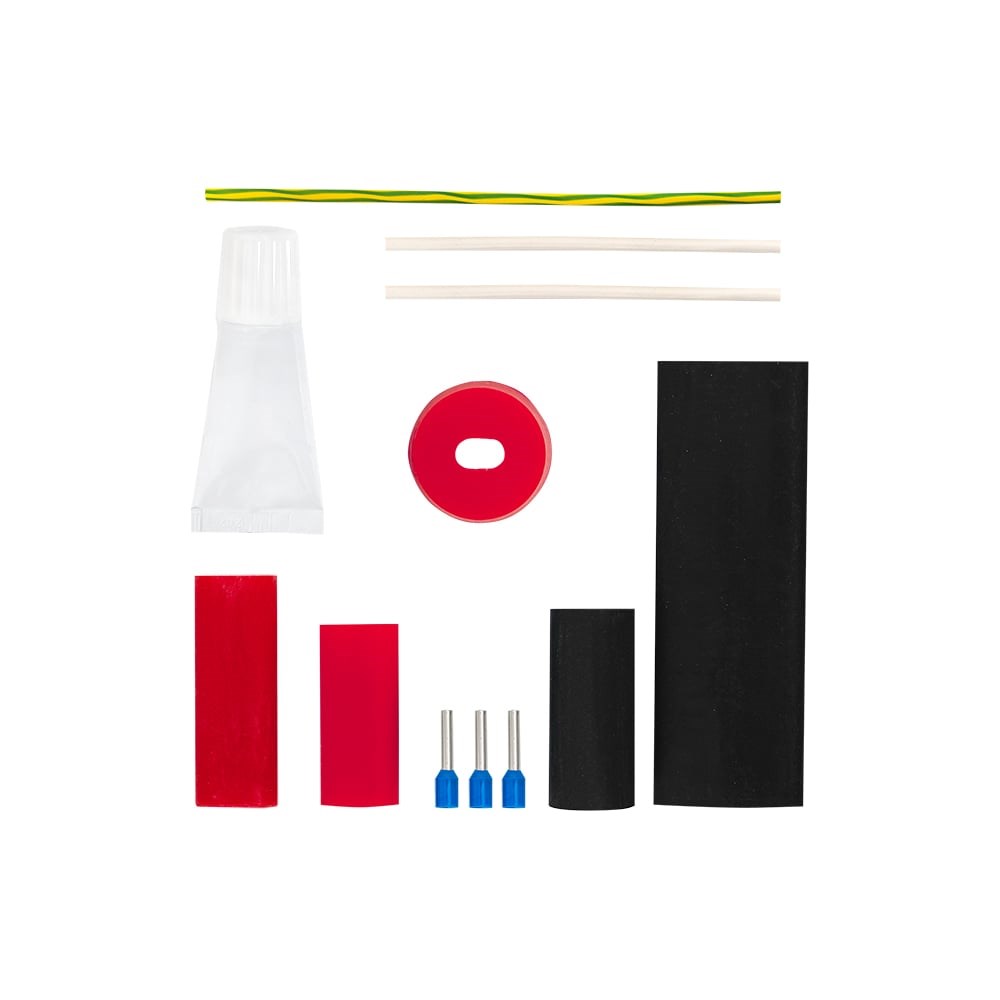 Комплект для заделки предназначен для герметичной заделки саморегулирующейся электрической нагревательной ленты: HTB, BTC (до 50 Вт/м), в том числе во взрывоопасной зоне, с максимальной температурой воздействия 125 °С. Комплект включает в себя: обжимные наконечники, трубка для заземляющего провода, кремнийорганическое уплотнения под кабельный ввод М25, клей-герметик объемом 10 мл и трубка для усиления механических свойств концевой заделки на основе термоусадки, обеспечивающая дополнительную прочность концевой заделки.
