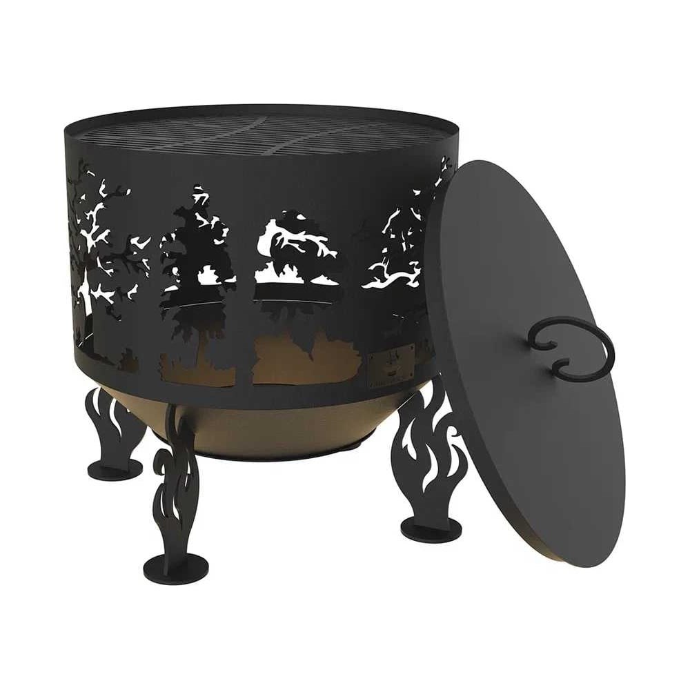 Комплект чаша + крышка пламегаситель+ решетка гриль. Чаша изготовлена из качественной стали толщиной 2 мм. Поверхность обработана термоустойчивой краской, которая продлевает срок службы конструкции. Высоко детализированный рисунок мы сделали на современном лазерном оборудовании. Широкие ножки обеспечивают максимальную устойчивость на газоне.