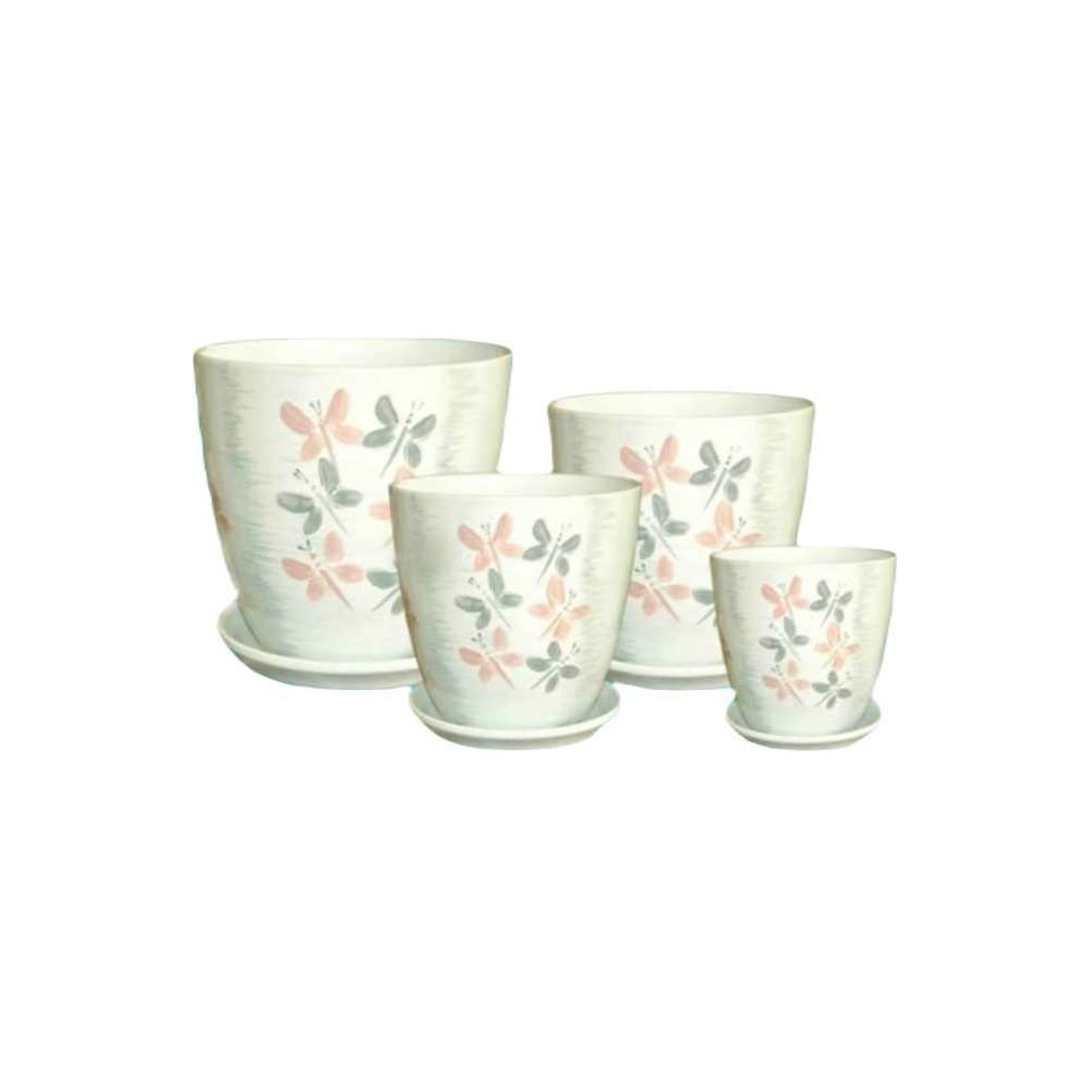 Комплект горшков для цветов Сады Аурики РС09 Бутон Вальс люкс, керамика, 12 см, 15 см, 18 см, 21 см 045315 используется для выращивания комнатных растений. Изделие выполнено из керамики - это дышащий и экологически чистый материал, являющийся "вечной классикой". Поддон собирает излишки жидкости при поливе, что позволяет содержать в чистоте место вокруг растения.