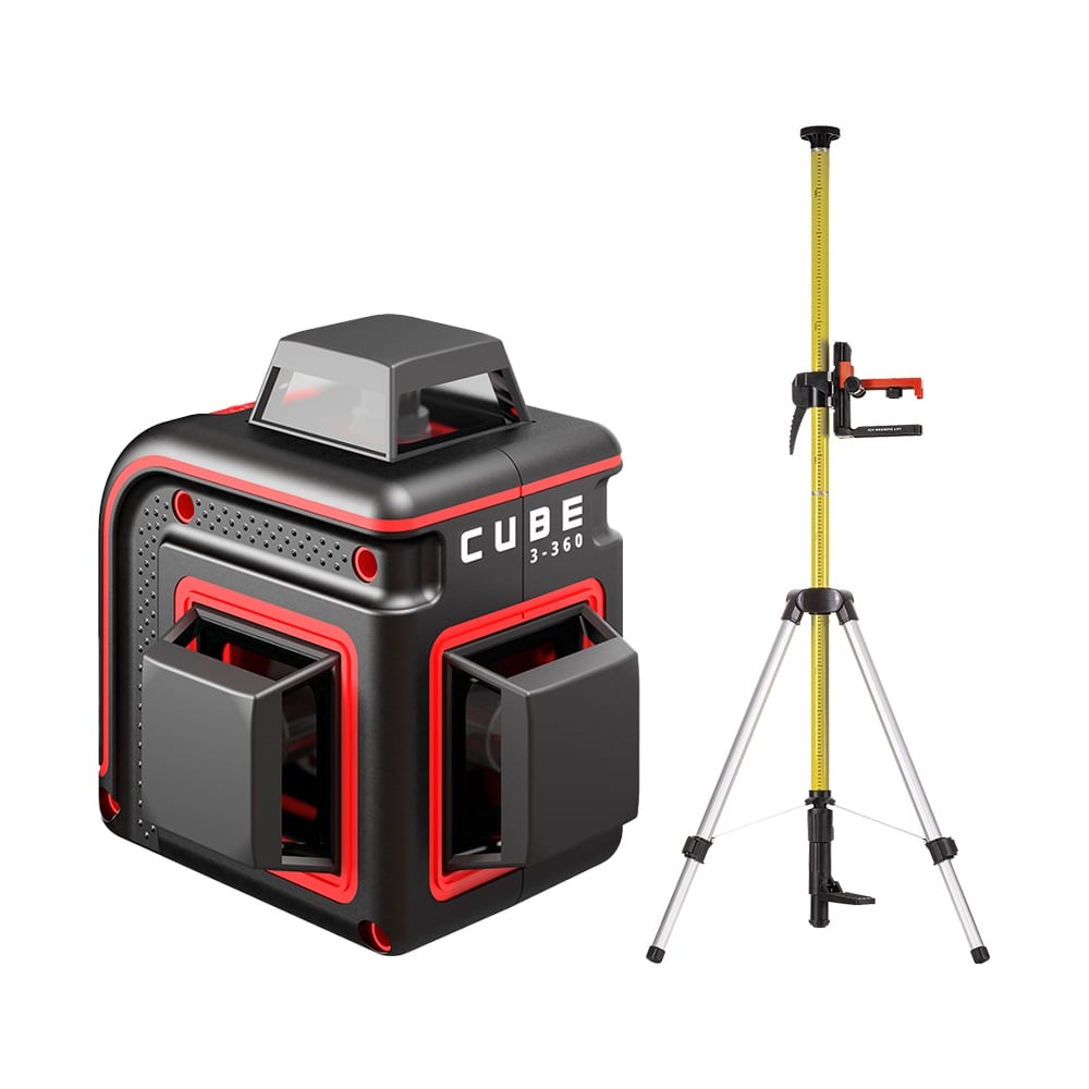 Комплект ADA CUBE 3-360 SPECIAL EDITION А00617 включает в себя лазерный уровень и штатив-штангу. Лазерный уровень ADA CUBE 3-360 Basic Edition А00559 подходит для строительных и ремонтных работ внутри и снаружи помещений. Проецирует три плоскости: одну горизонтальную и две вертикальных линии с разверткой 360°. Их можно поочередно отключать и оставлять только необходимые для работы. Дальность построения линии составляет 20 м, с приемником она увеличивается до 70 м. Резиновые накладки защищают устройство от ударов и падений. Элевационный штатив-штанга SILVER PLUS ADA А00556 используется для крепления лазерных дальномеров. Длина штанги составляет 3.6 м, поэтому подойдет для использования в помещениях, где высота потолков не превышает этот уровень.
