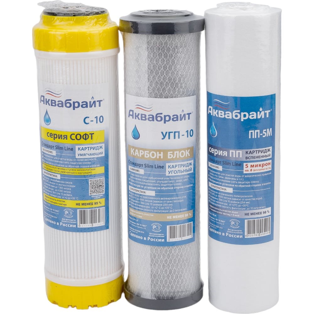 Комплект картриджей Аквабрайт УМЯГЧЕНИЕ для очистки жесткой воды К-2 ПП-5 УГП-10 С-10 33652
