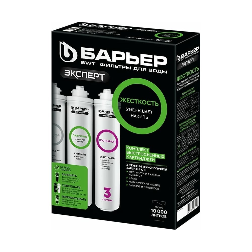 Комплект картриджей для фильтра под мойку БАРЬЕР ЭКСПЕРТ Жесткость, защищает от накипи Р223Р00 предназначен для специализированной очистки воды с повышенным содержанием солей жесткости. Протестированы по стандарту NSF (США) на максимальное давление 30 АТМ. 4-х кратный запас прочности. Производительность - 2 л/мин. Ресурс 10000 литров. По исчерпанию ресурса картриджи можно сдать на переработку.