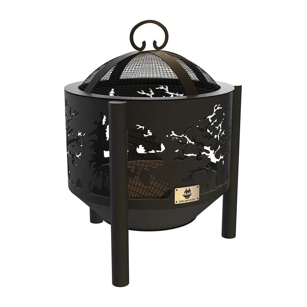 Комплект: костровая чаша с крышкой искрогасителем FIRE-HOUSE деревья диаметр 50 см на трубчатых ножках