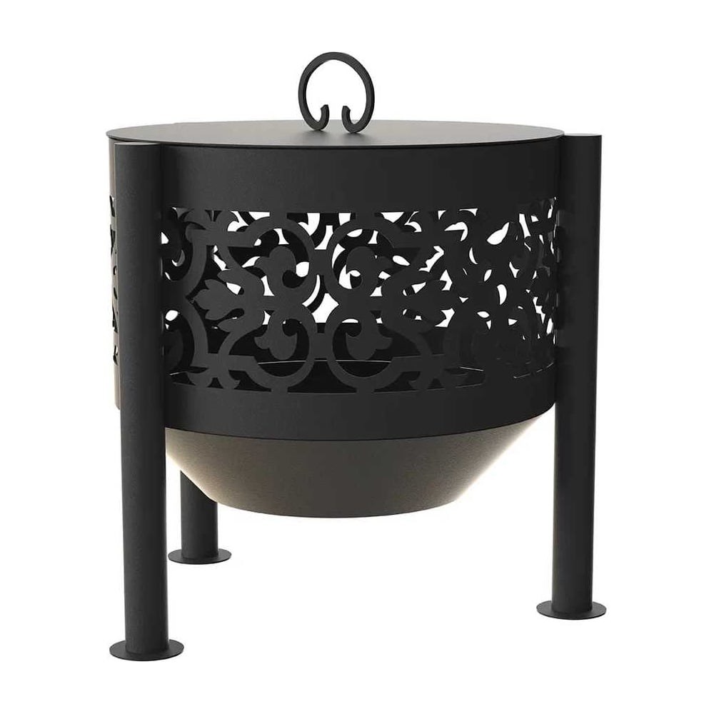 Комплект: костровая чаша с крышкой пламегасителем FIRE-HOUSE ажурная диаметр 50 см на трубчатых ножках