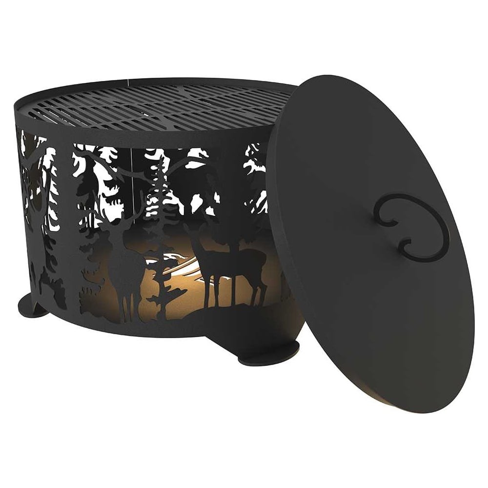 Комплект костровая чаша с решеткой гриль и крышкой пламегасителем FIRE-HOUSE олени диаметр 50 с плоским дном