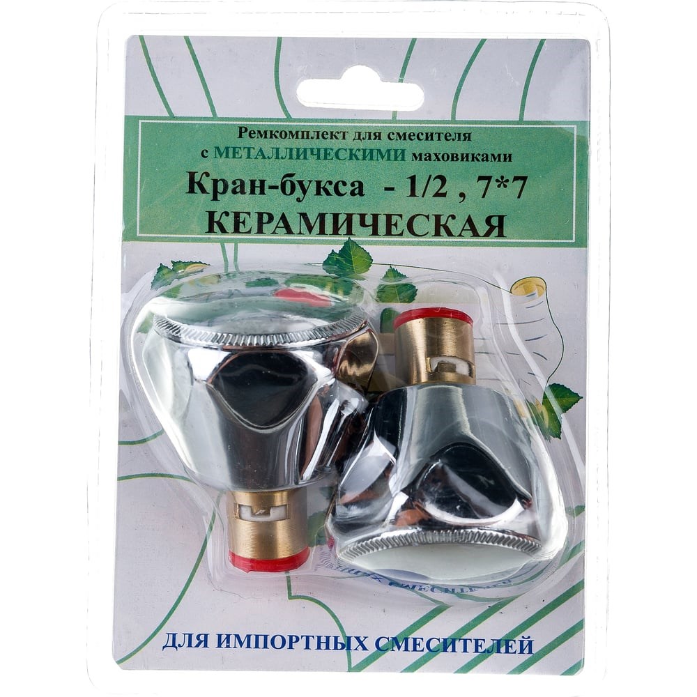 Комплект Профсан ПСМ кран-буксы 1/2" с маховиками Мария, металл RK-IMM включает в себя две кран-буксы с резьбой 1/2" и два металлических маховика типа Мария. Комплект кран-букс с маховиками под квадрат 7х7 подходит для импортных смесителей.