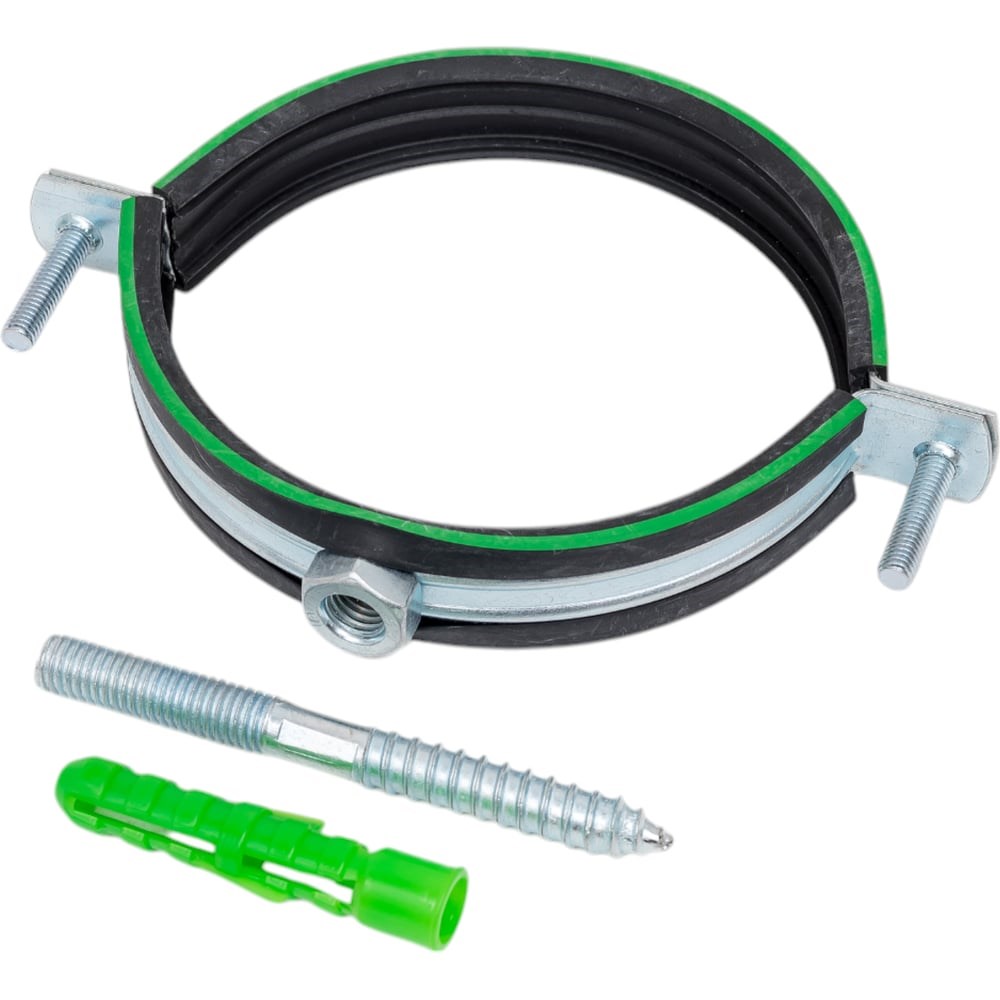 Комплект MAYER сантех. хомут со шпилькой 10x100 и дюбелем д/труб 4" (108-116 мм), гайка М10 140400100 обладает следующими свойствами: Материал изготовления: для изготовления хомута используется сталь ведущих металлургических комбинатов. Гальваническое покрытие: для производства хомута используется высококачественный состав реагентов для пассивации поверхности, который дает высокую стойкость к коррозии. Толщина оцинковки 8-10 микрон. Усиление конструкции: двойное ребро жесткости дает возможность качественнее приваривать гайку при меньшей площади контакта гайки с поверхностью. Эта технологическая особенность минимизирует отрыв гайки при монтаже и эксплуатации. Резиновая прокладка: резина изготавливается из материала ТЭП, в состав которого входит каучук. Резиновое уплотнение с улучшенными эксплуатационными свойствами обеспечивает надежное сцепление с трубой, улучшая показатели; глушит вибрацию, сохраняет эластичность при температурах от -50°С до +60°С и имеет длительный срок службы. Отличительная особенность - это зеленая полоса по контуру. Соединительные винты: винт сантехнического хомута имеет крестообразный и прямой шлиц, который упрощает монтажные работы. Широкая головка винта предотвращает разрыв отверстия. Увеличено количество витков резьбы в отверстиях под винты, что дает большую надежность соединения и снижает износ резьбовой поверхности хомутов, тем самым увеличивая их срок службы. Контроль качества: сварное соединение «гайка М8 (М10)» проходит систематическое тестирование хомута на разрыв с гайкой на специальном тест-станке. Нагрузка на отрыв гайки выше рекомендованной нагрузки.