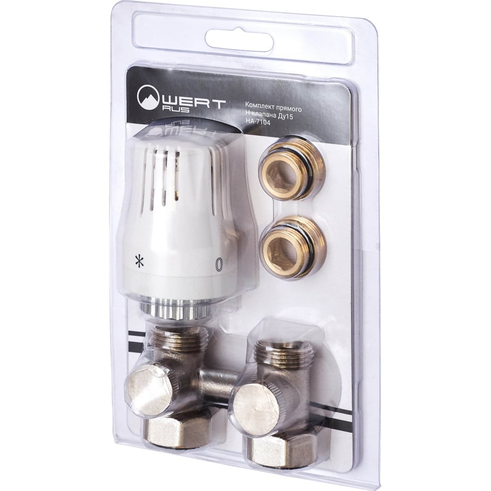 Комплект прямого Н-клапана WERTRUS Ду15 НА-7104 для подключения радиатора стального, панельного с прямым Н-блоком. С термоголовкой в комплекте.
