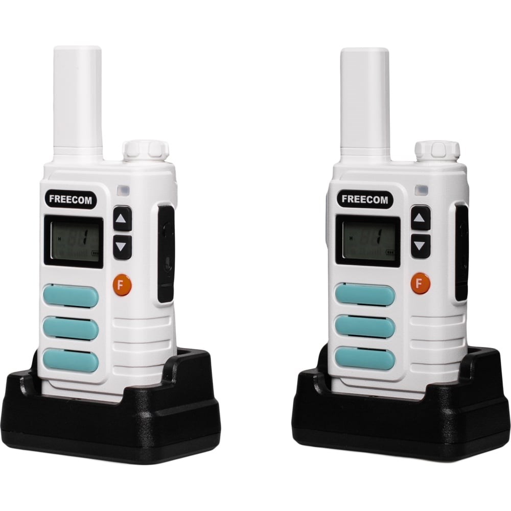 Комплект радиостанций Freecom 2 шт. MT-777 White имеет богатый функционал. Плоская форма и маленькие габариты позволяют комфортно переносить рацию в кармане, а USB зарядка позволяет заряжать рацию от PowerBank в походах или в машине. Совместима с рациями других брендов, которые работают в диапазоне LPD 433, PMR 446 и UHF 400-470. Высококачественный литий-ионный аккумулятор, 2000 мАч Стандартный порт micro USB для зарядки аккумулятора LPD 433/ PMR 446/ UHF 400-470 Быстрое зарядное устройство и время автономной работы до 25 часов без подзарядки 38 тонов CTCSS и 83 кода DCS на каждом канале 2 красочных корпуса (черный, белый) Четкий, чистый и высококачественный звук Широкий ЖК-дисплей с подсветкой Выбор высокой/низкой выходной мощности Многочастотный режим Компактный, легкий и прочный корпус Быстрое зарядное устройство Клавиша вызова с 10 тонами на выбор 2 программируемые боковые кнопки Встроенный светодиодный фонарик Функция VOX (радионяня) Звуковые подсказки, монитор, сканирование каналов Автоматическое шумоподавление Блокировка клавиатуры, звуковой сигнал, экономия батареи 2 - контактный разъем для внешнего микрофона и динамика Класс защиты IP56 (защита от пыли и брызг, можно использовать под дождем) Радиус действия: 1-3 км город; 4-6 км лес; 10 км горы Время работы от акб: 17 час беспрерывная работа; 27 час режим радио няня VOX; 40 час частичное использование.