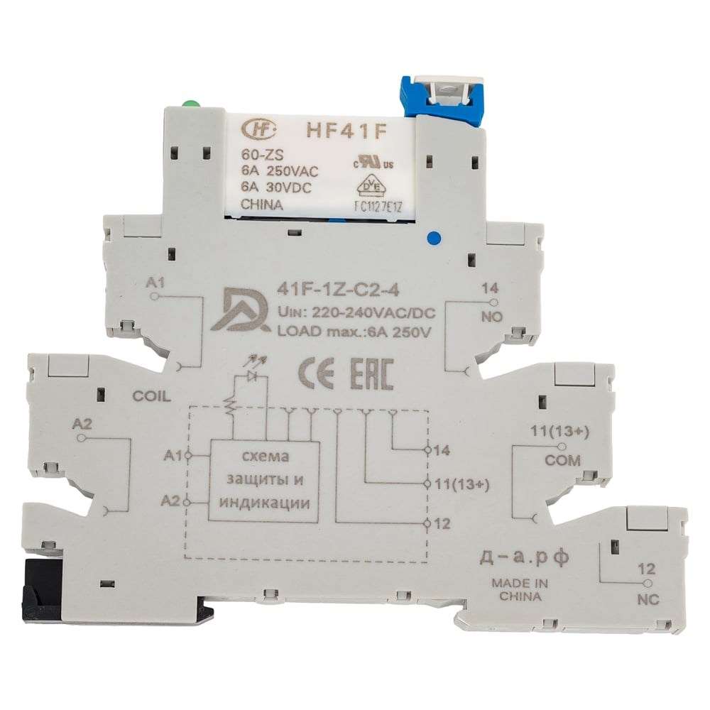 Промежуточные интерфейсные релеHF41-220-DA имеют одну группу контактов с нормально-открытым и нормально-закрытым контактами. Напряжение катушки составляет 220В AC, а номинальный ток контактов 6А. Промежуточное реле HF41-220-DA поставляется комплектно совместно с розеткой и маркировкой. Высокая отказоустойчивость и производительность промышленных реле HF41-220-DA позволяет использовать в различных промышленных областях!
