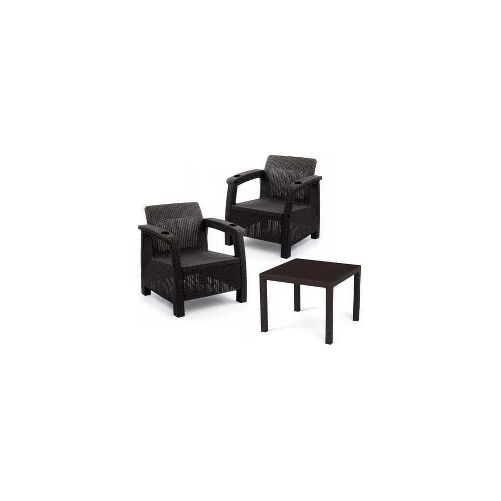 Набор дачный на 2 персоны (2 кресла + стол) искусственный ротанг без подушек с подлокотниками