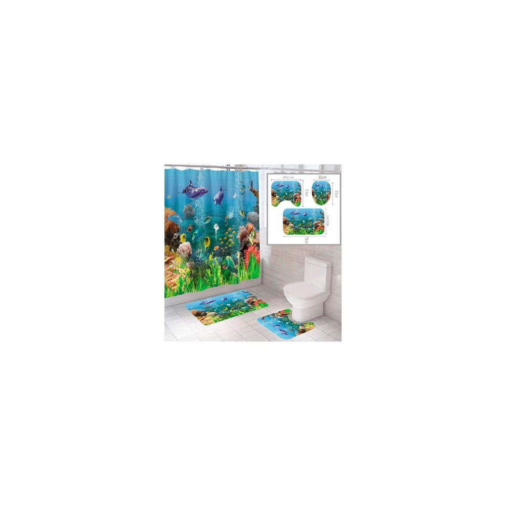 Комплект шторка и два коврика SANTRADE в одном дизайне Океан 0342