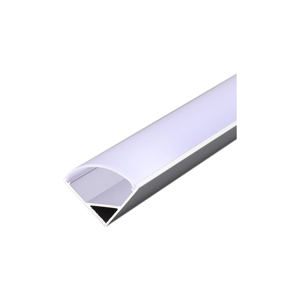 Комплект включает в себя алюминиевый профиль, рассеиватель, две заглушки (с отверстием и без отверстия) и 2 монтажные клипсы для комфортного монтажа. Угловой профиль универсален в применении, подходит для освещения или подсветки при установке по периметру помещения и кухонного гарнитура. Профиль выполняет важную функцию отвода тепла, образующегося в результате работы светодиодов, что увеличивает срок службы LED ленты. Также он защищает светодиодную ленту от механических воздействий и возможных повреждений. Съемный пластиковый экран обеспечивает равномерное рассеивание светового излучения и не искажает передаваемые оттенки свечения. Профиль изготовлен из анодированного алюминия. Устанавливается на поверхность посредством крепежей. Угол излучения к поверхности составляет 45 градусов. При совмещении двух угловых профилей образуется светодиодный светильник.
