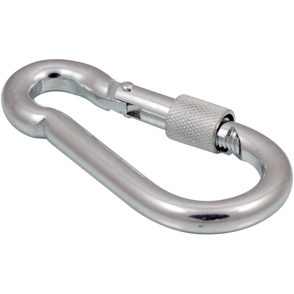 Комплект усиленных универсальных стальных карабинов с фиксатором Forceberg HOME and DIY 10 мм, 2 шт. 9-2080014-002 из углеродистой стали выдержит усилие на отрыв 340 кгс. Цинковое покрытие защищает сталь от ржавчины. Карабин можно использовать для удобного прикрепления поискового магнита к веревке для магнитной рыбалки.