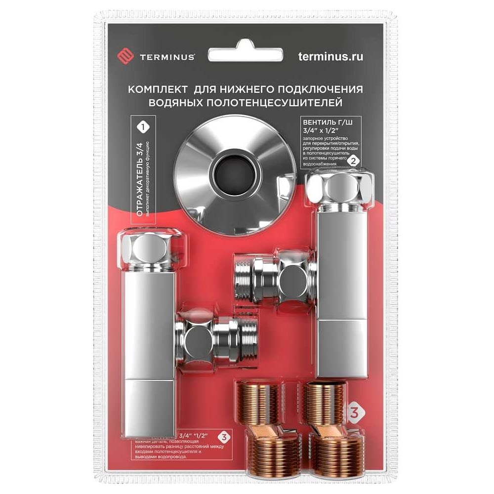 Комплект используется для нижнего подключения полотенцесушителей с выходом под подключение 1/2 дюйма, внутренняя резьба Вентиль г/ш 3/4"х1/2"- запорное устройство для перекрытия/открытия, регулировки подачи воды в полотенцесушитель из системы горячего водоснабжения. Эксцентрик 3/4"х1/2" - важная деталь, позволяющая нивелировать разницу расстояний между входами полотенцесушителя и выводами водопровода. Отражатель 3/4" выполняет декоративную функцию.
