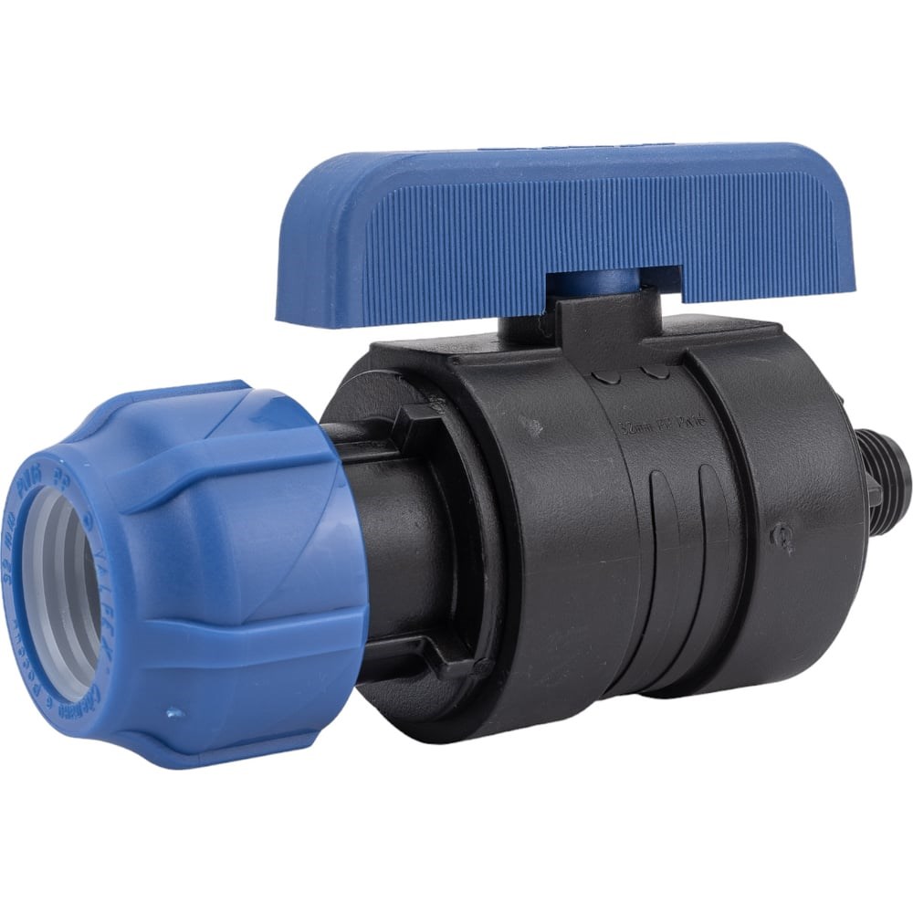 Шаровой кран VALFEX ПНД компрессионный цанга - наружная резьба, разборный 32x1/2" 1210012632012 предназначен для перекрытия потока транспортируемой жидкости. Применяется на трубопроводах холодного водоснабжения с температурой не более 40°С. Кран имеет с одной стороны наружную резьбу, равную стандартному размеру стальных резьб, а с другой цанговый зажим, что позволяет использовать кран шаровой компрессионный как переходной элемент трубопровода с возможностью регулирования потока воды.