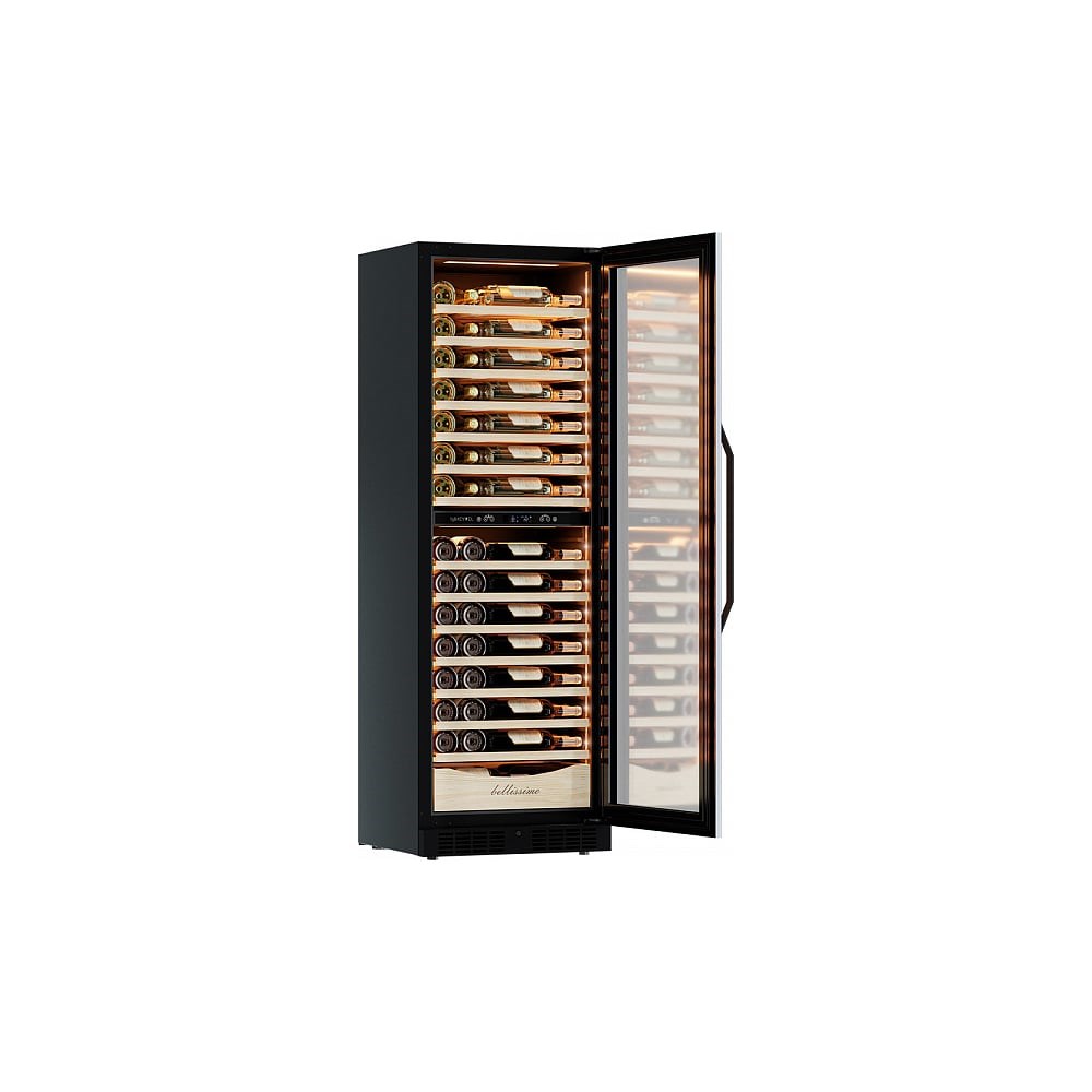 Винный шкаф предназначен для профессионального и длительного хранения различных сортов вин (до 110 бутылок типа Бордо). Он так же оснащен дверью с защитой от ультрафиолетовых лучей и поддерживает влажность в диапазоне 60-80%, как в настоящем винном погребе. Главным преимуществом этой модели являются её небольшие размеры. Обычно винные шкафы больших размеров имеют глубину около 70 см, но у этой модели она всего 55 см. Именно поэтому MV110-KBT2 (Slim) идеально вписывается в кухню любых размеров. Также он отлично подойдёт и для ресторанов. MV110-KBT2(Slim) может устанавливаться как отдельно, так и встраиваться в нишу. За счёт того, что верхняя петля двери не выступает за пределы корпуса и шкаф оснащён встроенной системой вентиляции- эта модель устанавливается в нишу с минимальными зазорами. Внутреннее пространство винного шкафа разделено на две температурные зоны. Можно настроить их так, что бы хранить все виды вина при идеальной температуре или установить разные значения, что бы напитки всегда были готовы к подаче.