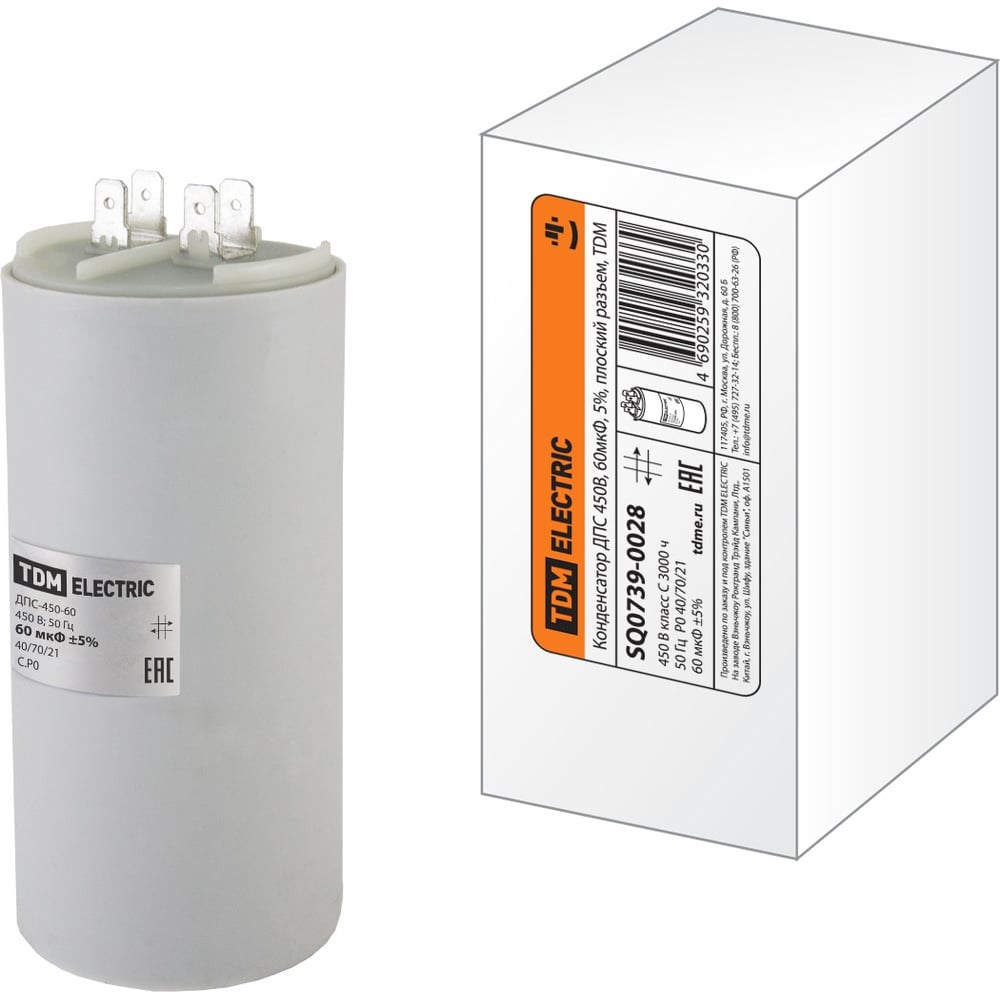 Дополнительные характеристики Конденсатора TDM ELECTRIC ДПС 450В, 60мкФ, 5проц., плоский разъем, SQ0739-0028: Соответствует стандартам - ГОСТ IEC 60252-1-2011 IEC252. Номинальная частота, Гц - 50. Тангенс угла потерь на частоте 50 Гц - до 0,001. Максимально допустимое напряжение между выводами, В - 1,1Un. Максимально допустимый ток между выводами, В - 1,3In. Тип диэлектрика - полипропилен. Рабочая температура окружающей среды, ºС - от -40 до +70. Терминал типа - faston 0,8x6,35.