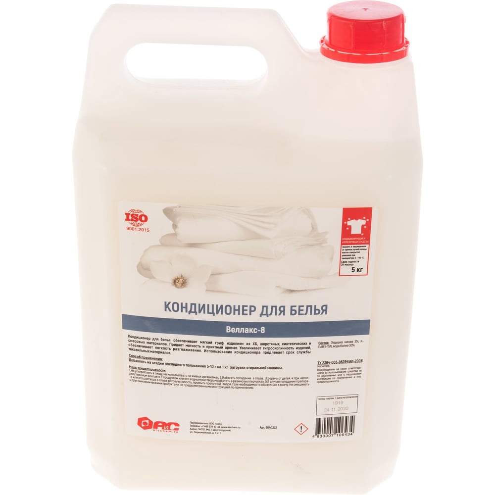 Кондиционер для белья АиС Веллакс-8 5 кг 6040322 облегчает разглаживание и увеличивает гигроскопичность вещей из ХБ, шерстяных, синтетических и смесовых материалов. Оставляет приятный аромат. Используется для придания мягкости изделиям и обладает антистатическим эффектом. Небольшой расход средства экономит деньги.