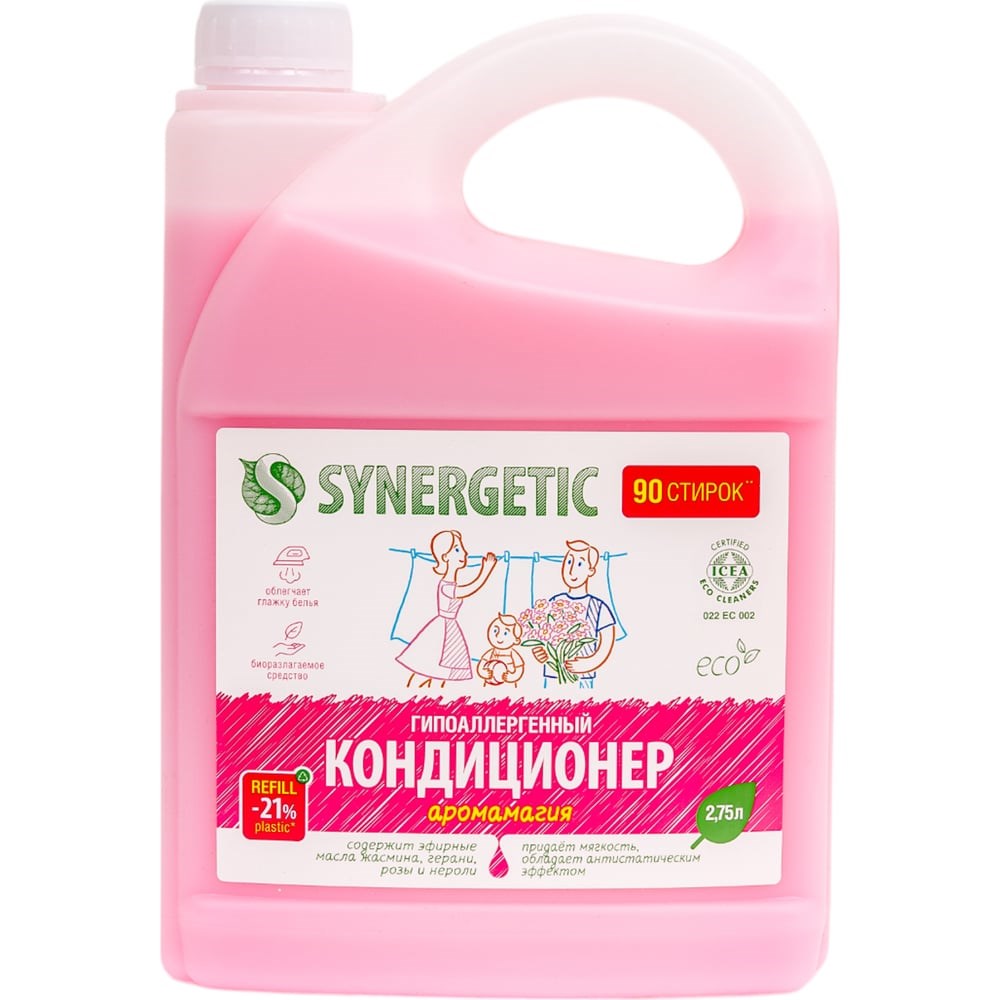 Кондиционер для белья SYNERGETIC АРОМАМАГИЯ канистра ПЭ 2.75 л 4623722441843 110275 – высокоэффективное средство, бережно ухаживающее за всеми типами ткани и придающее особую мягкость белью после стирки. Обладает антистатическим эффектом. Комплекс растительных К-тензидов обеспечивает легкую глажку белья. Гипоаллергенная отдушка с маслами жасмина, герани, розы и нероли придаёт белью нежный аромат. Подходит для ручной и машинной стирки, полностью выполаскивается из тканей. Международный экологический сертификат ICEA подтверждает биоразлагаемость, безопасность и эффективность средства. Гипоаллергенный кондиционер-ополаскиватель нейтрализует остатки средств для стирки на тканях. Безопасен для септических установок. Water, Esterquat, Isopropyl Alcohol, Glycerin, Food Dyes, Nonallergic Parfume with Natural Oils.