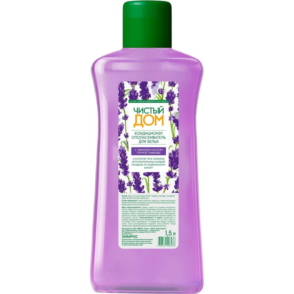 Кондиционер-ополаскиватель для белья Чистый дом лаванда, 1.5 л 553 содержит эфирное масло лаванды, благодаря которому средство имеет яркий, летний аромат: Придает белью мягкость; Легко выполаскивается; Обеспечивает приятный аромат; Продлевает срок службы вещей. Способ применения: Залейте 50-80 мл. средства в стиральную машину перед полосканием или добавьте в конце полоскания при ручной стирке. Использовать только по назначению.