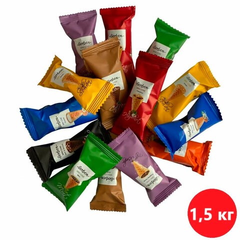 Конфеты мини-рожки в индивидуальной упаковке SORBON "Ассорти Радуга", 1500 г