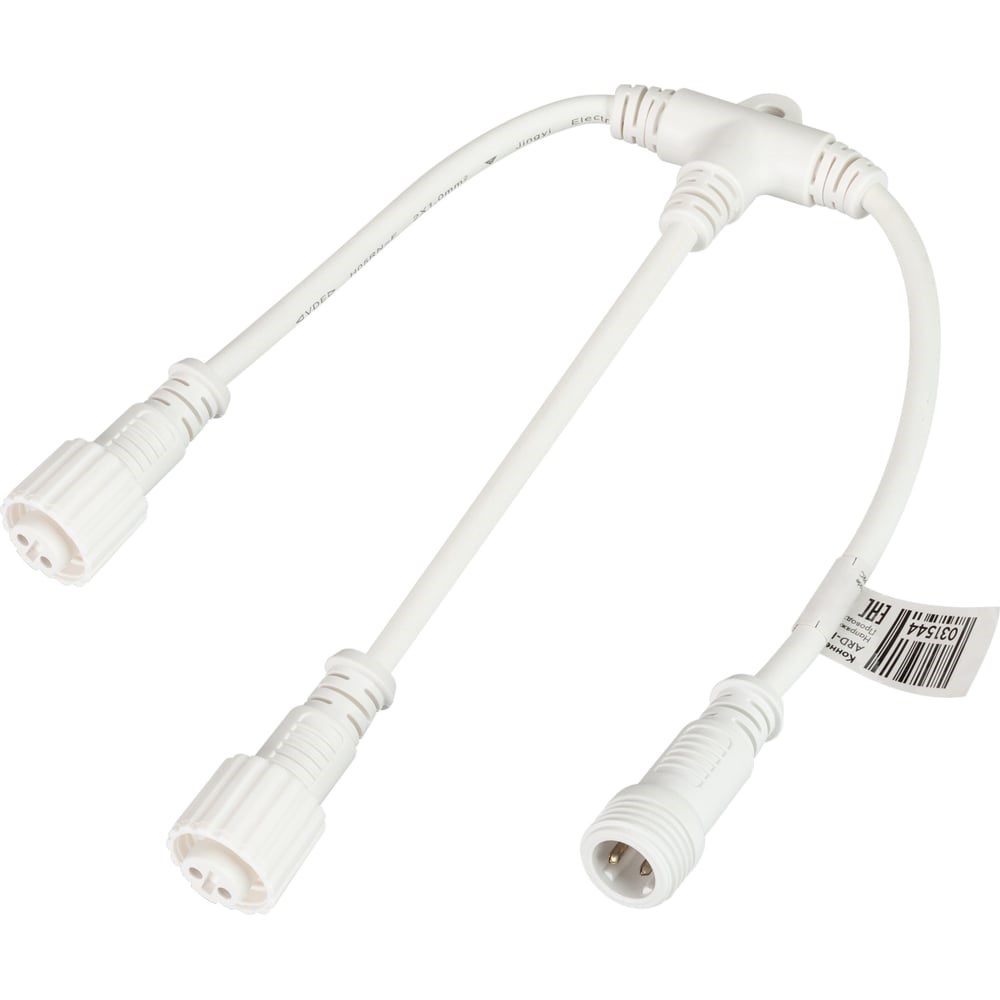 Т-образный коннектор для подключения блоков питания к гирляндам серии SPI-RGB. PRO серия. Материал резиновый (каучук), цвет белый. Индекс пылевлагозащиты - IP65.