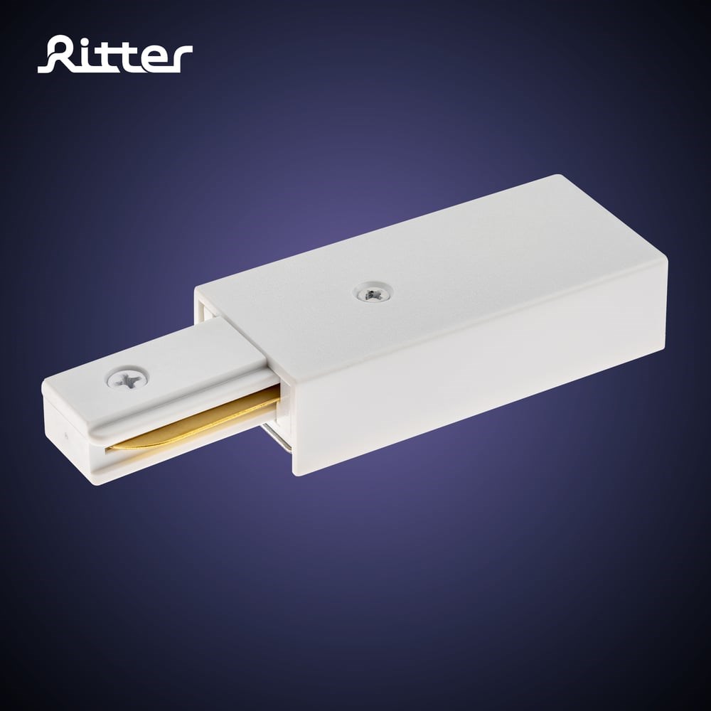 Прямой коннектор питания для шинопровода RITTER Artline пластик/медь белый 59755 5 предназначен для подведения электропитания к однофазному шинопроводу. Ввод питания является неотъемлемой частью трековой системы освещения, он подключает питания для одного шинопровода или целой цепи. Функциональной особенностью трековой системы освещения Ritter ARTLINE является возможность передвижения световой точки по линии шины. Это позволяет корректировать насыщенность света в разных частях комнаты в зависимости от интерьерных требований. Чтоб запитать один или несколько шинопроводов используется токоподвод - ввод питания для однофазного шинопровода. Шинопровод Ritter ARTLINE можно найти под артикулами: 59783 8, 59784 5, 59785 2, 59786 9.
