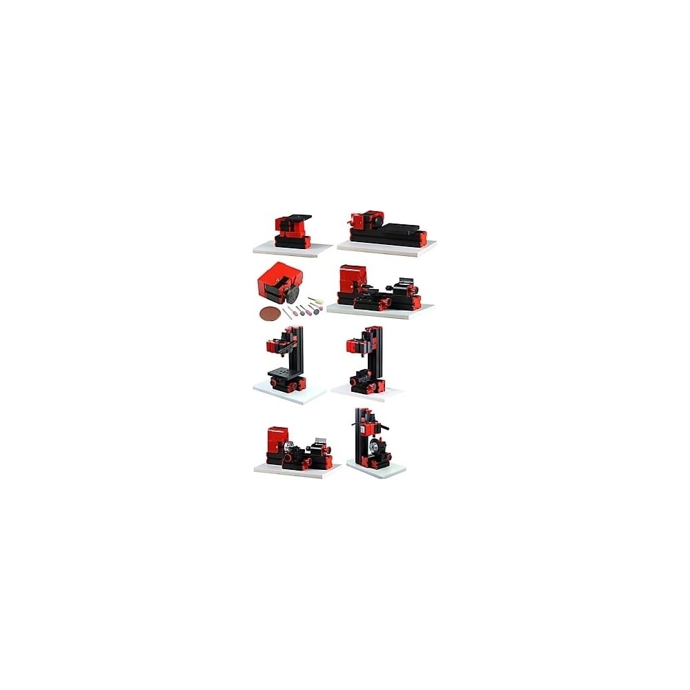 Конструктор модульных станков TRIOD 24П8 2478 применяется для создания моделей нескольких видов станочного оборудования, а также в учебных классах для изучения строения и функциональных возможностей собранных аппаратов. В набор входят готовые пластиковые модульные блоки, из которых можно сконструировать: токарные станки по дереву и металлу, фрезерный станок, сверлильный станок, шлифовальный станок, координатно-фрезерный станок, заточной станок, лобзик. Комплект включает в себя рабочий стол для лобзика размером 90х90 мм и рабочий стол для сверлильного станка размером 123х100 мм.