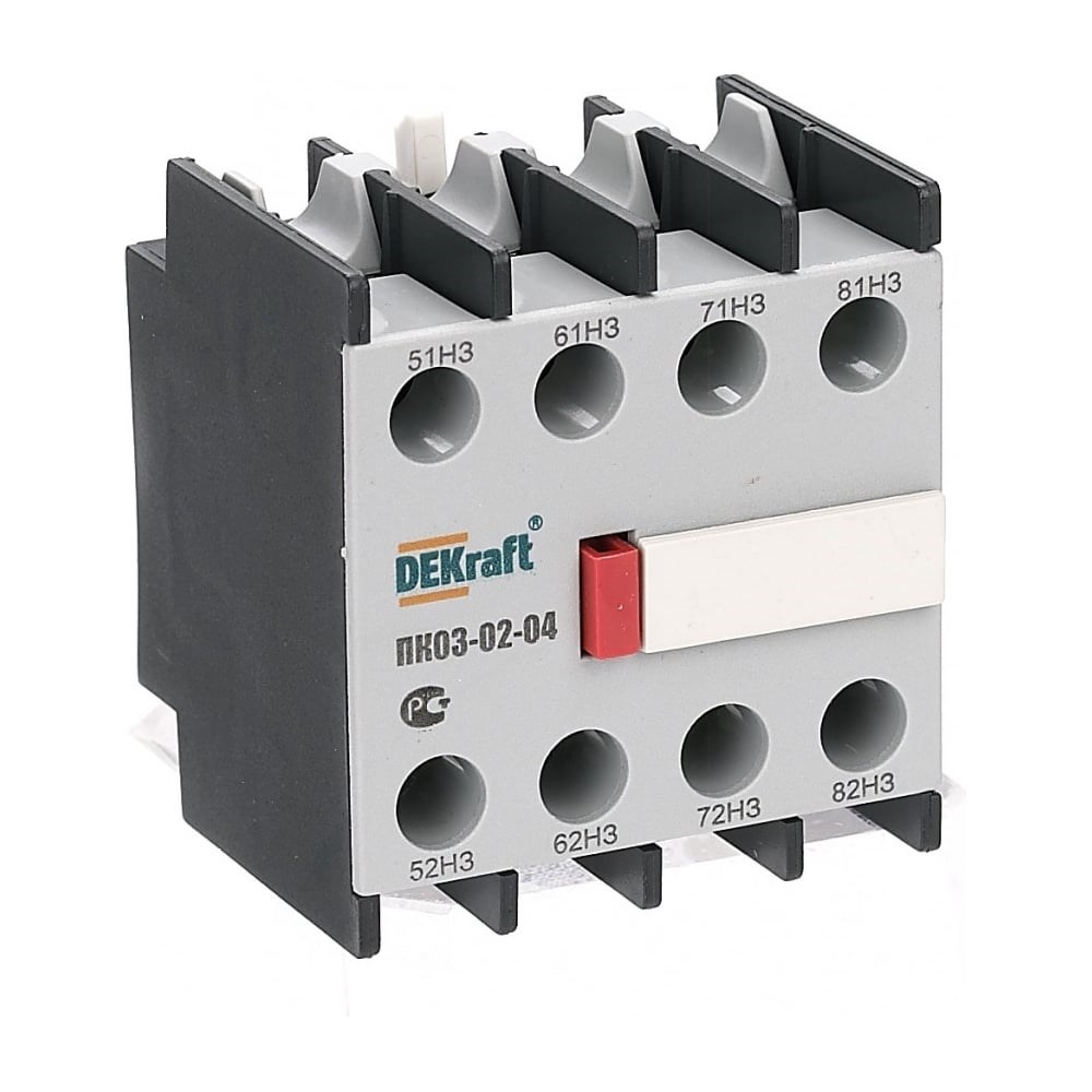 Дополнительные характеристики для контактной приставки Dekraft лицевой установки ПК03-02-04 24104DEK: Используется с контакторами серий КМ-102 и КМ-103. Установка в пазы. Увеличивает количество вспомогательных контактов контактора. Обеспечивает надежная связь между контактной приставкой и пускателем. Механическая износостойкость - не менее 1,6 млн. циклов. ГОСТ 50030.5.1-2005 (МЭК 60947-5-1:2003). Лицевая установка.