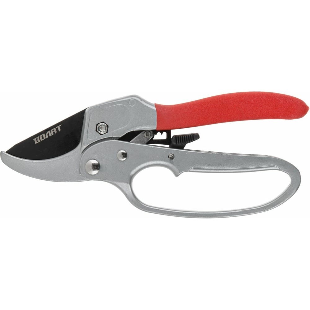 Контактный секатор ВОЛАТ 59060-04 применяется для обрезки живых веток диаметром до 18 мм. Рельефные рукоятки из металла оснащены обрезиненным покрытием, которое предотвращает скольжение руки при работе. Лезвие изготовлено из инструментальной стали, которая отличается прочностью и устойчивостью к износу. Фиксатор позволяет безопасно хранить и перевозить инструмент.