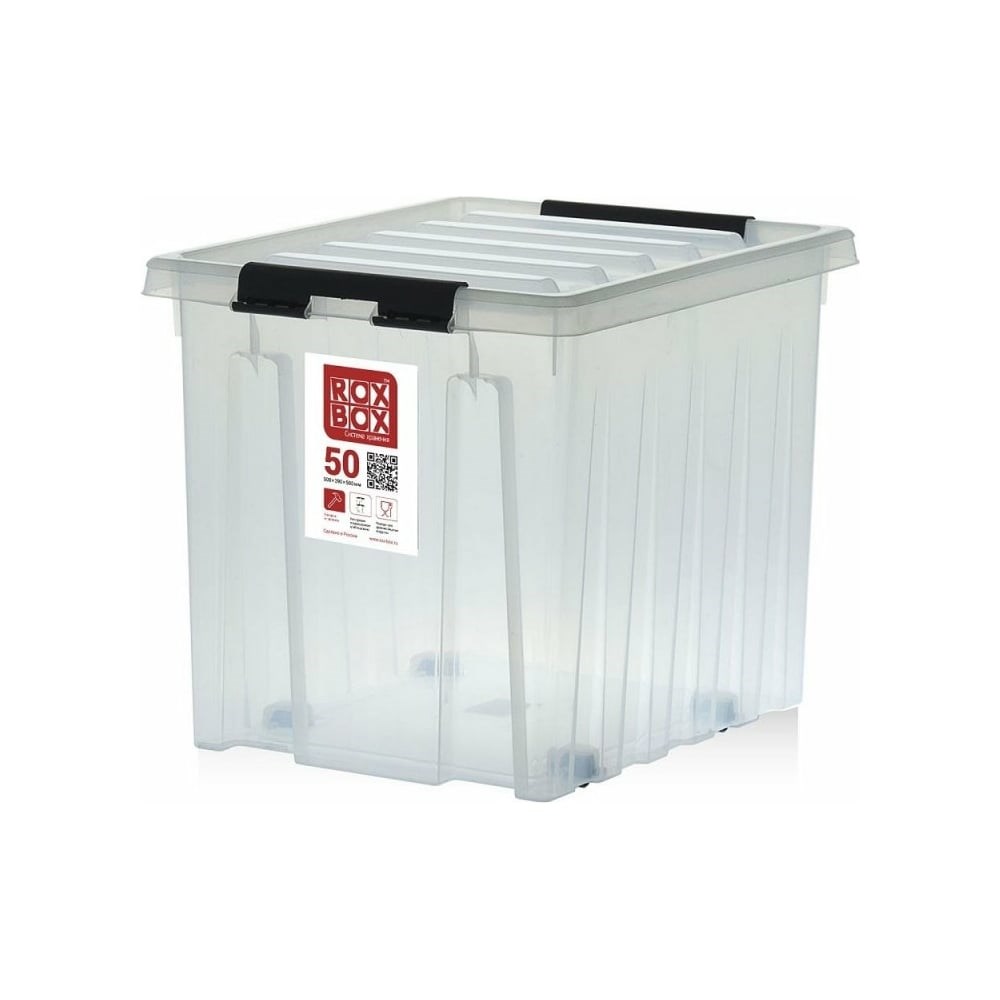 Контейнер на роликах с крышкой Rox Box 50 л Универсальное решение для хранения и порядка Ключевые преимущества: Вместительность 50 литров – оптимальный объем для крупных и мелких предметов Прозрачные стенки – быстрый поиск содержимого без открывания Экологичный полипропилен – безопасен для хранения продуктов питания Ролики для мобильности – легкое перемещение по любым поверхностям Широкий температурный диапазон от -40°C до +120°C Конструктивные особенности: •ерметичная крышка с клипсой-защелкой – защита от влаги, пыли и посторонних запахов Ударопрочный материал – выдерживает механические нагрузки Эргономичная форма – удобство при переноске и штабелировании Гладкая внутренняя поверхность – легкая очистка от загрязнений Области применения: Дома: хранение сезонных вещей, игрушек, инструментов, продуктов Офис: архив документов, канцелярские принадлежности Производство: детали, инструменты, расходные материалы Торговля: товарные запасы, демонстрационное оборудование Технические параметры: Объем: 50 л Материал: пищевой полипропилен Температурный режим: -40°C до +120°C Система закрывания: 2 клипсы-защелки Дополнительно: возможность штабелирования Rox Box 50 л – идеальный порядок в прозрачном исполнении!