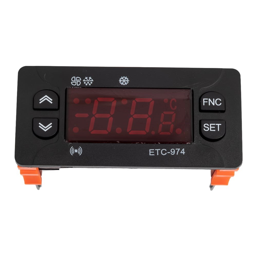 Параметры электропитания: 230В (±10%), 50/60 Гц. Потребляемая электрическая мощность: 3,0 ВА; Исполнительный выход: 3 реле: - Реле «компрессора»: 1НО (нормально открытая группа контактов), 10 А / 250в; - Реле «вентилятора»: 1НО (нормально открытая группа контактов), 10 А / 250в; - Реле «разморозки»: 1НО + 1НЗ (нормально открытая и закрытая группы контактов), каждая группа: 10 А / 250в; Аналоговые входы: 2 входа датчиков температуры: - вход датчика pb 1 - температура охлаждаемого объёма (NTC или PTC - выбирается параметром). - вход датчика pb 2 - температура испарителя (ВОП) (NTC или PTC - выбирается параметром). Диапазон контроля температур: -50 ÷ 140°С; NTC-датчик: -50,0°С ...+ 120,0°С; PTC-датчик: - 50,0°С ...+150,0°С; Точность: не менее 0,5% от шкалы+1цифра. NTC-датчик: ± 0,5°С; PTC-датчик: ±1,0°С; Разрешение экрана: 1°С или 1,0°С (с возможностью переключения между десятичным и целым округлённым числом); Длина провода датчика в комплекте: 2,0 метра (возможность самостоятельного удлинения до 50,0 м.); Размеры прибора: передняя панель 77,0 x 34,5мм; глубина 58,0 мм; Монтаж: шаблон отверстия в панели — 71,0 x 29,0 мм; Параметры среды применения: -5,0°С ~ +55,0°С; относительная влажность: 10% ~ 90% RH, без конденсата; Параметры среды хранения: -30,0°С ~ +85,0°С; относительная влажность: 10% ~ 90% RH, без конденсата; Защита передней панели: IP 65; Корпус: полимерный пластик.