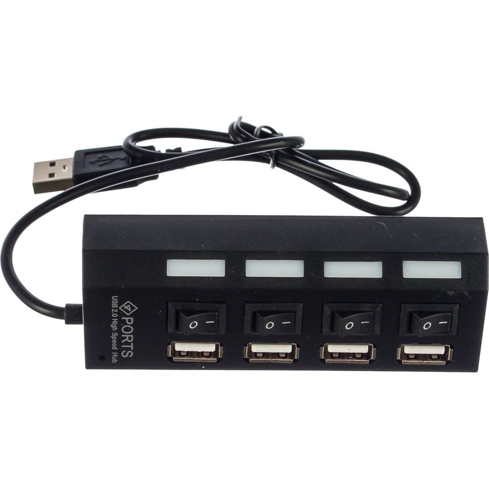 Концентратор Gembird USB 2.0 с подсветкой и выключателем, 4 USB порта, черный блистер UHB-243-AD