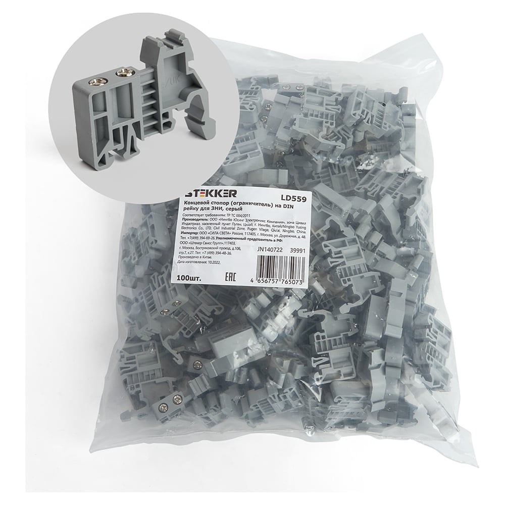 Концевой стопор (ограничитель) на DIN рейку для ЗНИ Stekker LD559