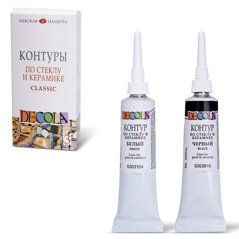 Контуры для работ по стеклу и керамике "Декола", НАБОР 3 цвета, туба по 18 мл, Невская Палитра, 5341375