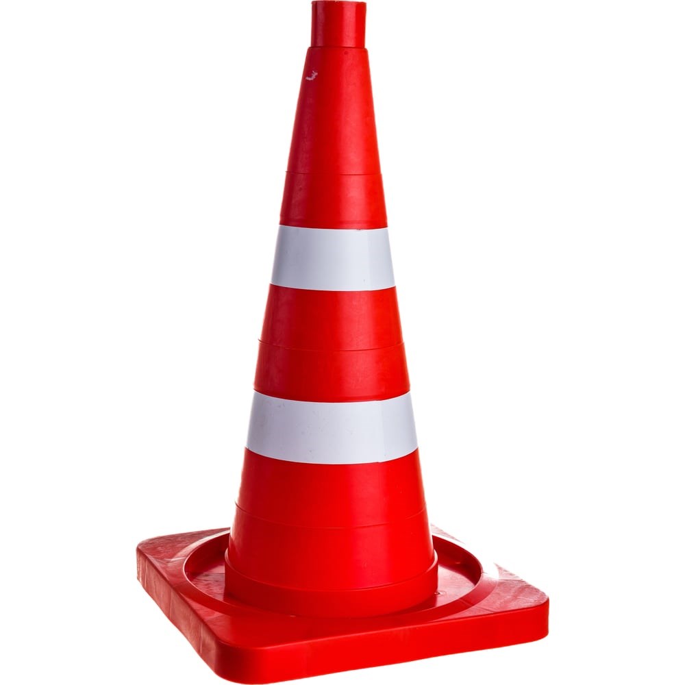 Сигнальный конус 510мм, Оранжевый, с 2-мя белыми полосами, квадратное основание Протэкт КС-2.4-П можно установить для ограничения определенной зоны на дороге во время ремонта или проведения мероприятий. Модель обладает значительным собственным весом, что делает ее более устойчивой к ветру и потокам воздуха от проезжающих автомобилей.