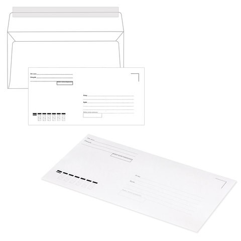 Конверты Е65 (110х220 мм), отрывная лента, "Куда-Кому", 80 г/м2, КОМПЛЕКТ 1000 шт., 41643