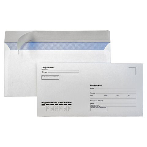 Конверты E65 (110х220 мм), отрывная лента, "Куда-Кому", 80 г/м2, КОМПЛЕКТ 1000 шт., внутренняя запечатка Е65.02СКК