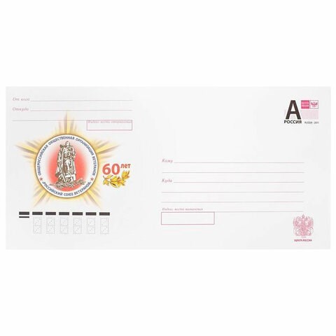 Конверты маркированные ПОЧТА РОССИИ "литера А", E65 (110х220 мм), отрывная лента, "Куда-Кому", 80 г/м2, КОМПЛЕКТ 10 шт., 881004
