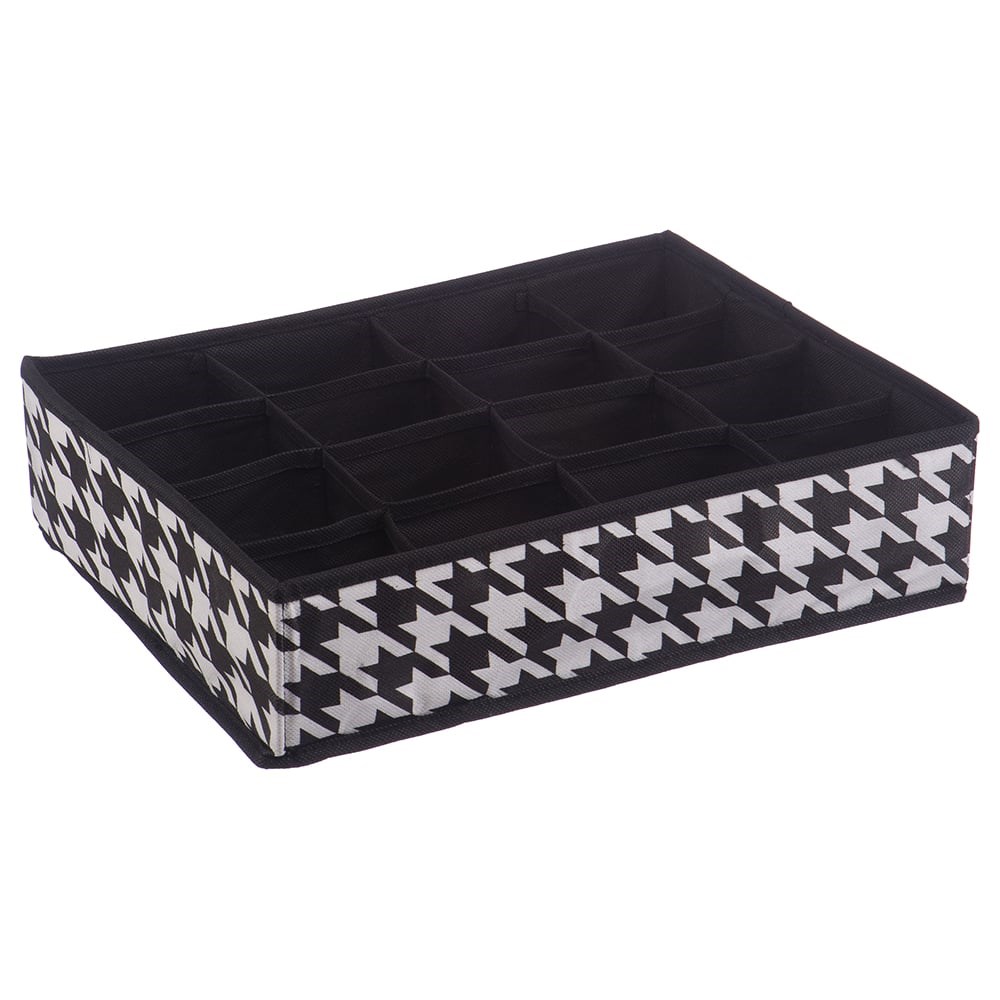 Короб-органайзер подходит для хранения летней обуви, носков, нижнего белья, галстуков и других вещей. Конструкция короба складная, поэтому в сложенном виде он занимает минимум места. Короб с 16 секциями выполнен из нетканого материала.