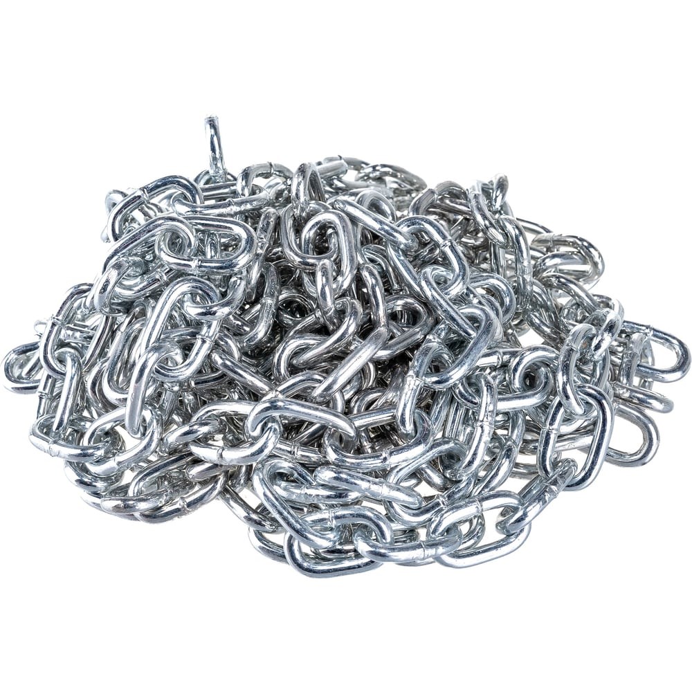 Область применения: применяется в строительстве и быту для крепления неответственных конструкций (подвески, растяжки и пр.). Допускается использовать для подъема и перемещения грузов в бытовых условиях. Не предназначена для выдерживания ударных нагрузок. Материал:углеродистая сталь с антикоррозионным цинковым покрытием. Особенности:цепь имеет малый коэффициент растяжения и большую степень свободы, ограниченную одним звеном. Размер цепи соответствует диаметру поперечного сечения проволоки, применяемой при вязке. Внимание! Размер отверстия цепи может незначительно отличаться в зависимости от поставки.