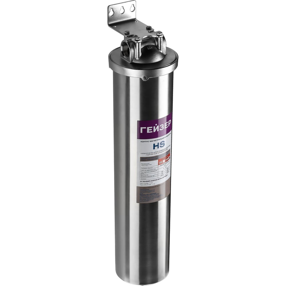 Корпус из нержавеющей стали Гейзер HS 20BB 1" предназначен для установки на магистраль холодного либо горячего водоснабжения. В зависимости от установленного в него сменного элемента может очищает воду от различного типа примесей: механических примесей, солей жёсткости, хлора, органических примесей, железа и марганца. Помимо надёжность металлических корпус так же отличается долгим сроком службы - т.к. его прочностные характеристики с годами не ухудшаются. Характеристики: Максимальное давление, атм: 8; Температура очищаемой воды, °C: +4…93°С; Присоединительный размер:1”; Типоразмер: 20 BB; Габаритные размеры (высота x диаметр): 625x150; Материал: нержавеющая сталь; Резьба внутренняя сливного отверстия корпуса: M10x1.
