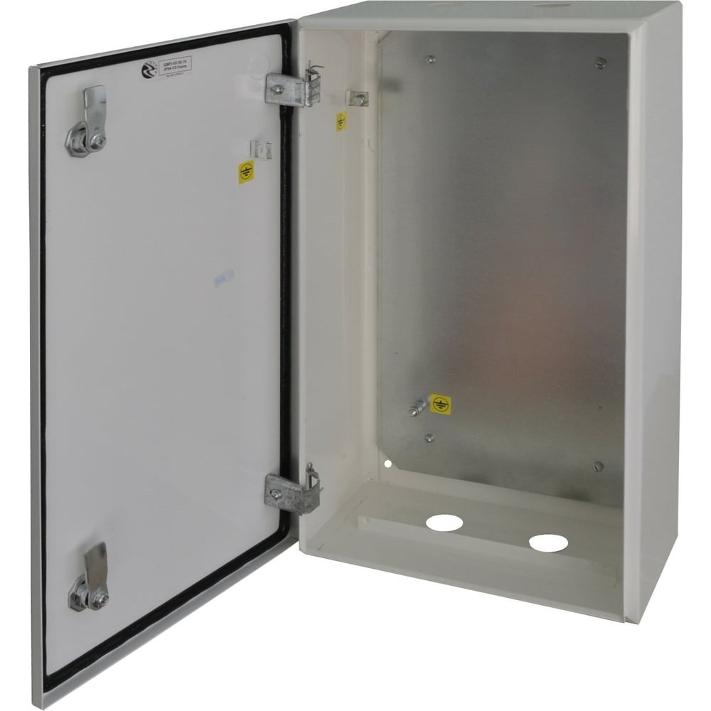 Корпус Узола ЩМП-60-40-25 IP54-У3-001 U0114604025 с монтажной панелью предназначен для размещения электроаппаратуры распределения, управления и сигнализации, приборов учета. Аппаратура устанавливается в щитке на монтажной панели и на двери с внутренней стороны. Конструкция щитка представляет собой металлический сварной корпус навесного исполнения. Климатическое исполнение - УЗ. Также в комплектацию входит монтажная панель, замок, сальники или заглушки ввода. Для крепления на квадратный столб можно отдельно заказать хомут - Узола Хомут на столб 300х220мм U00090000.